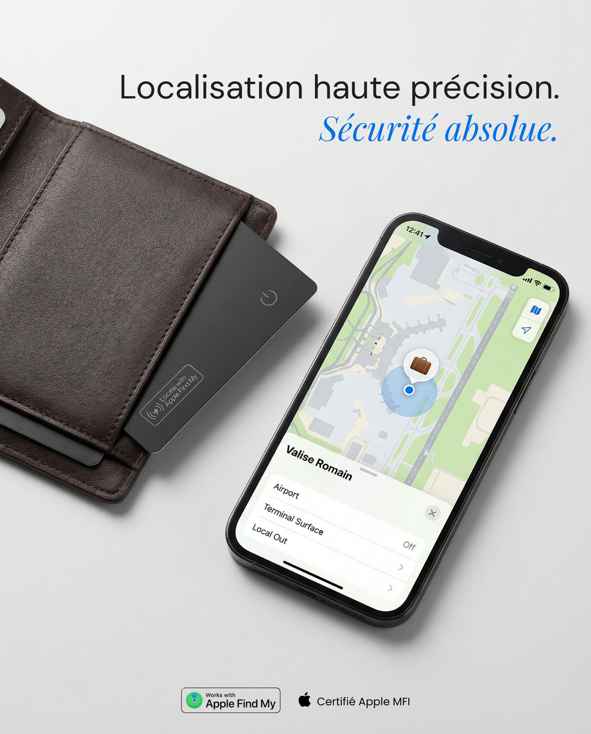 C'est un produit certifié par Apple pour utiliser leur réseau officiel "Find My", garantissant une expérience identique à celle d'un AirTag, mais dans un format carte ultra-fin.